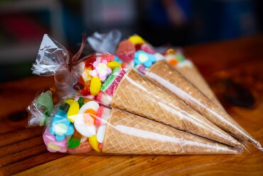 Cabritas crujientes, algodón de azúcar, conos dulces y brochetas de marshmallows… todo listo para endulzar tu día entre toboganes y chapuzones.